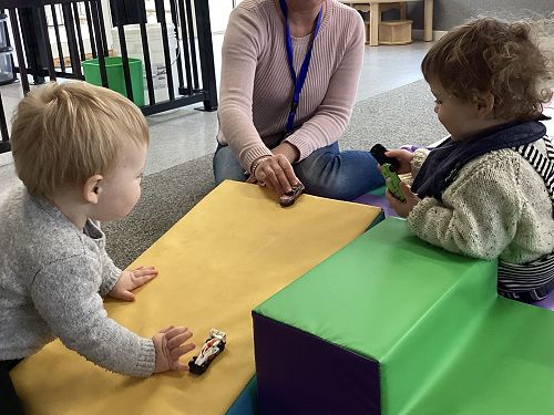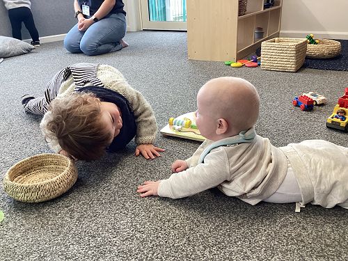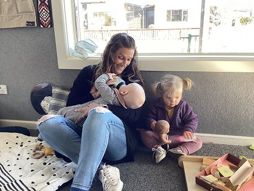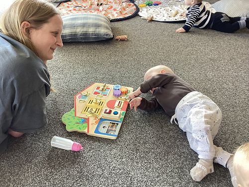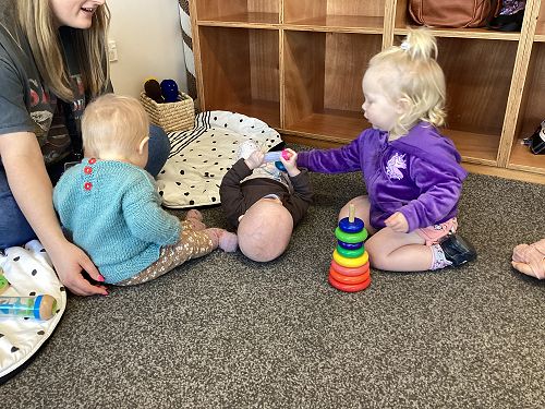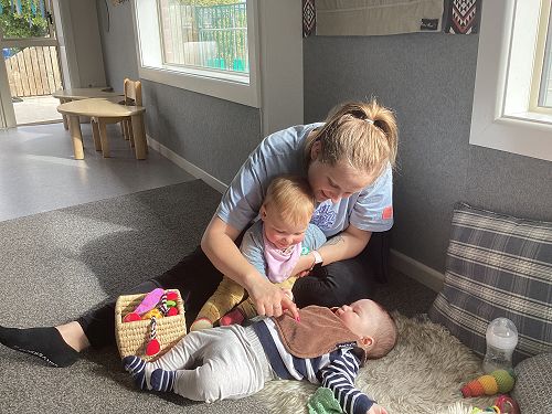 In Ruawai we have a special baby blanket that is just for our pepi to settle in and explore ā tōna wā | in their own time, while the toddlers sit on the outside and say hello, pass them toys and get to know the smallest members of our West End Kindergarten whānau.