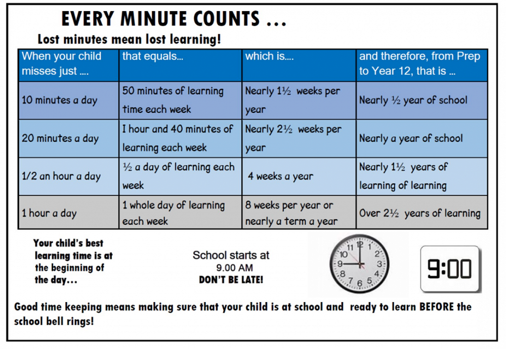You are probably aware that regular attendance is a key Ministry priority. Regular attendance means that your child is at school just about every day or at least 90% of the time (9/10 days).