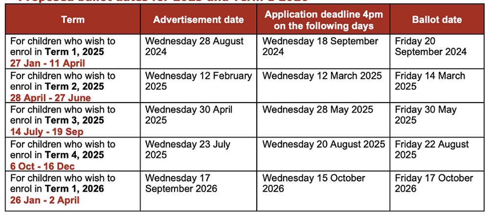 Applications must come to the Board of Trustees ballot for consideration. Applications must be received as follows. OOZ enrolment forms may be picked up from the school office.