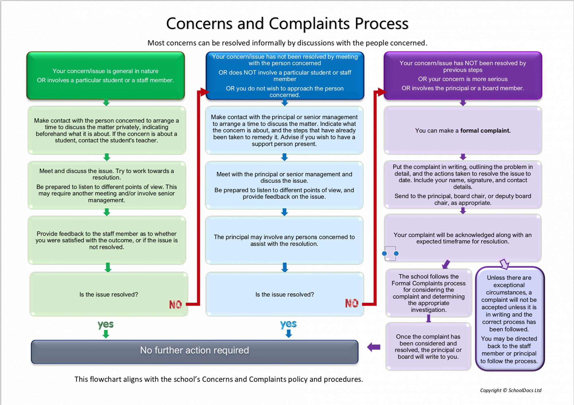 Sometimes no matter where we are, we find things are not just as we think they should be and want to have a 'gripe about something.' There is always a correct process for this so please see the diagram below.