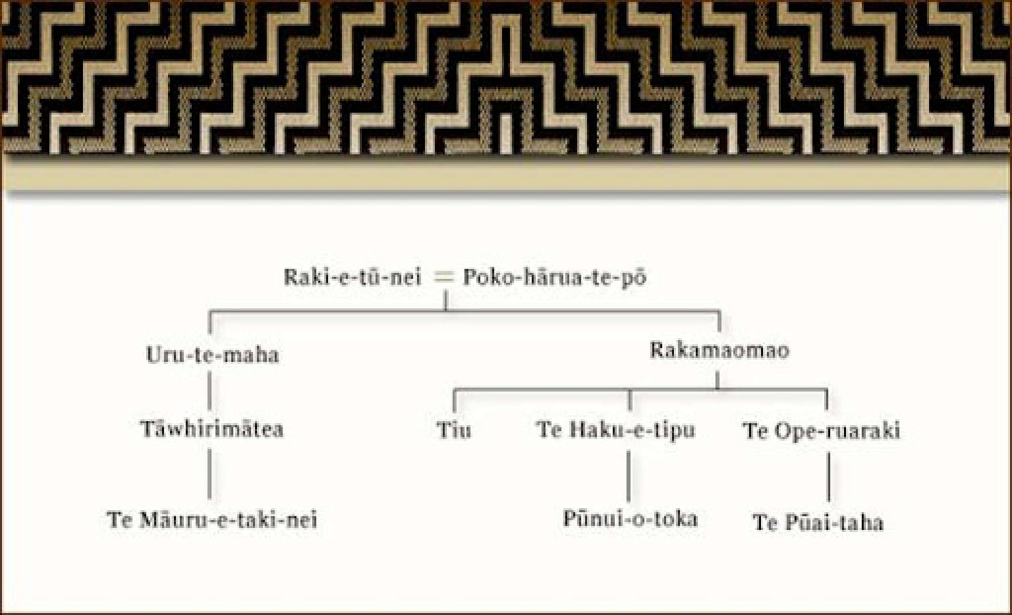 According to this whakapapa, the names of Te Māuru-e-taki-nei, Pūnui-o-toka and Te Ope Ruaraki (existing names at Te Manu Tukutuku) are shown as sitting under Rakamaomao. Uru-te-maha and Rakamaomao are the origins of the winds from different directions and specifically Rakamaomao is the group of winds that blow from the North and South.