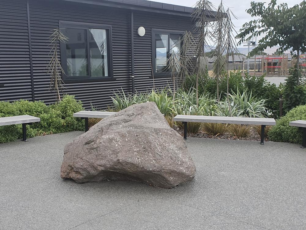 The rock came from the Shands Road site and was the one thing the children wanted to keep and bring to Te Manu Tukutuku. It connects us to the old site and keeps us grounded in who we are. It anchors us to our kite as it takes flight and remains the safe place for our children as they wait for their whānau.
