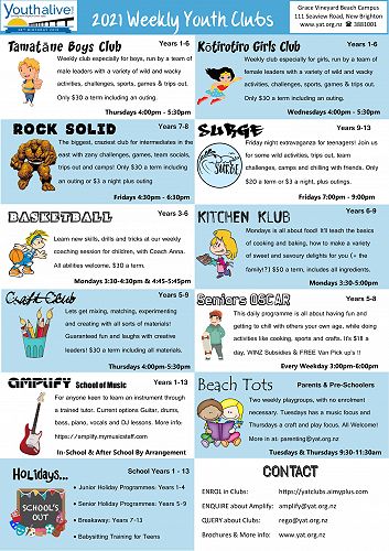 All Weekly Clubs start Week 2 – w/o 2nd August. See attached poster.
