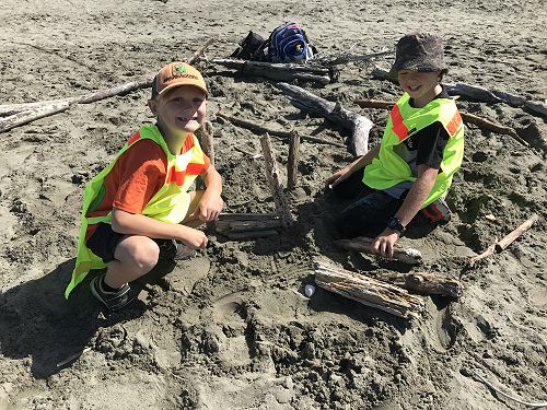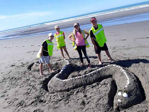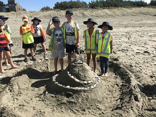 After we had finished doing orienteering we went to the beach for a sandcastle contest. We kept the same groups. There were some very clever castles made but McKenna, Tayla, Layten and Ethan P’s group made a snake and they won.