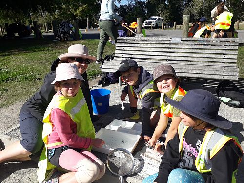 The next morning for breakfast we had a choice of toast, rice bubbles, and cornflakes. Then we got ready to leave the camp and make our way home. On the way home we first stopped off at the animal park. We saw some different types of birds like fantails, tuis and little piggys. Afterwards we got in the cars and headed to ‘The Groynes. There we saw 100 year old trees and listened to a guide who told us about the reserve. We then went and did some investigations about water bugs which was fun. When we got back to school we were met by our parents. We went home and got slobbered in kisses by our parents who had missed us heaps.