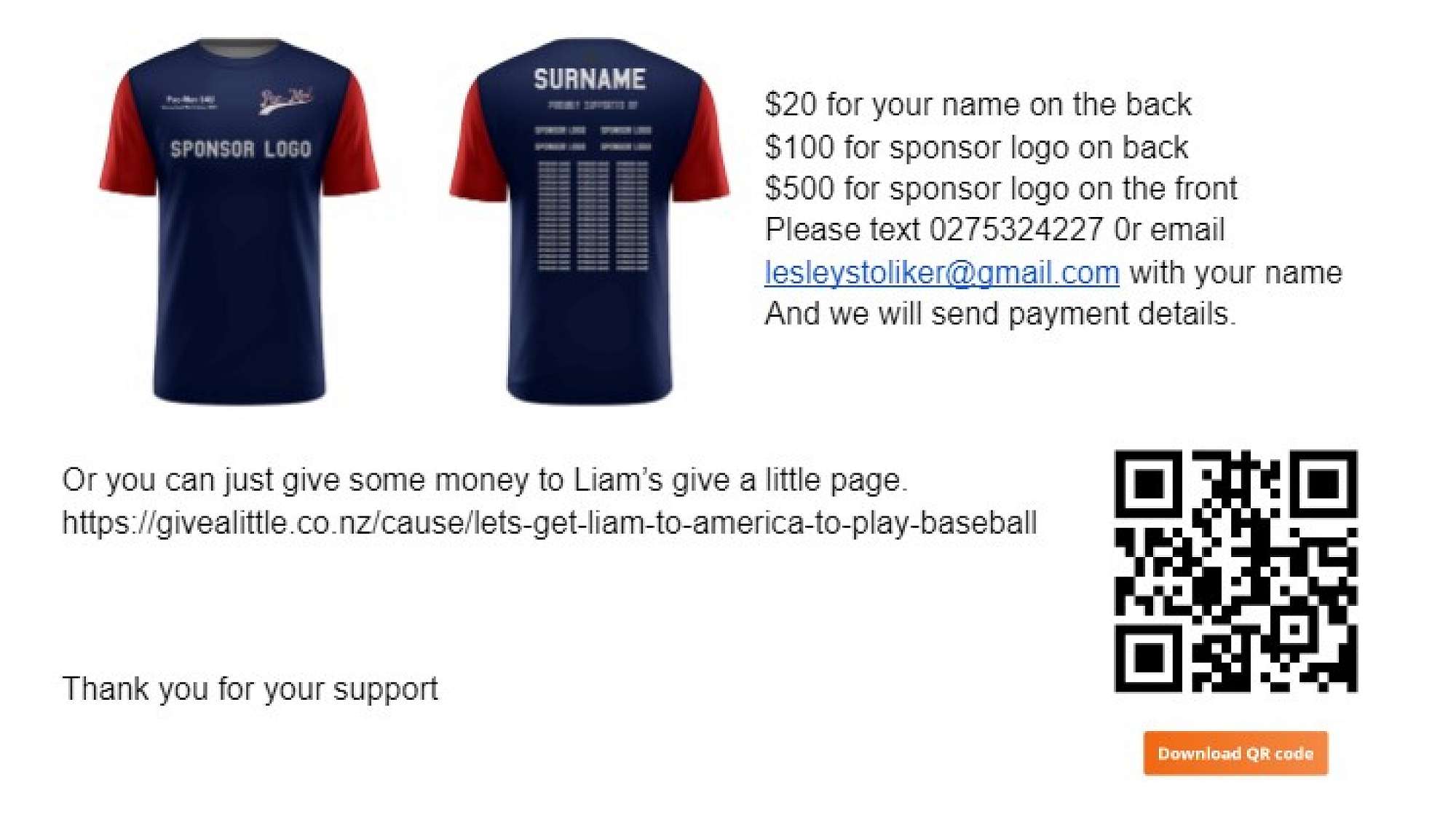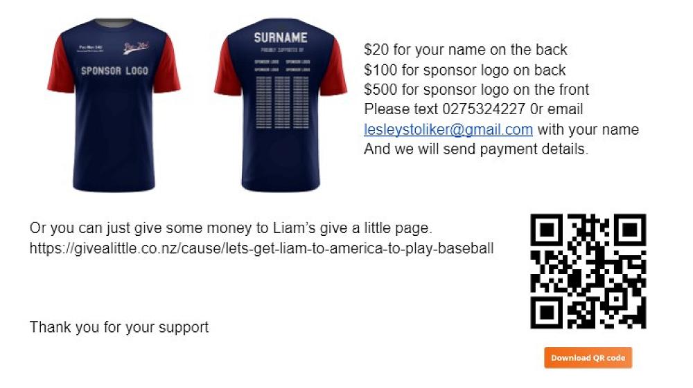 A BIG Thank You to Southbridge School for sponsoring Liam $100. If you would like to help us get Liam to America you can pay to get your name on his training shirt too, or donate to his givealittle cause https://givealittle.co.nz/lets-get-liam-to-america-to-play-baseball