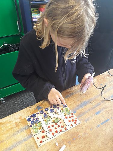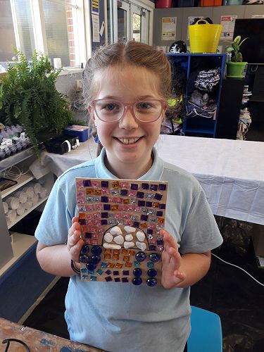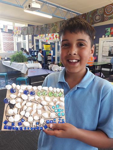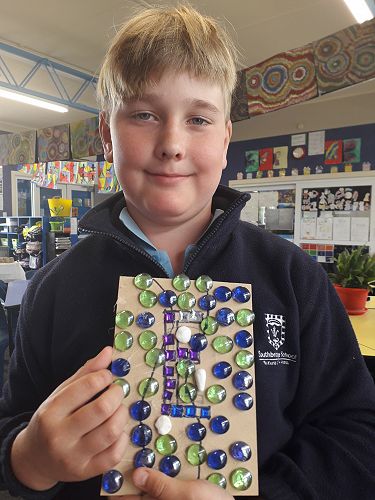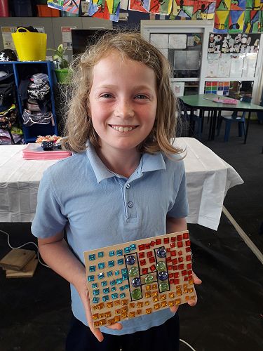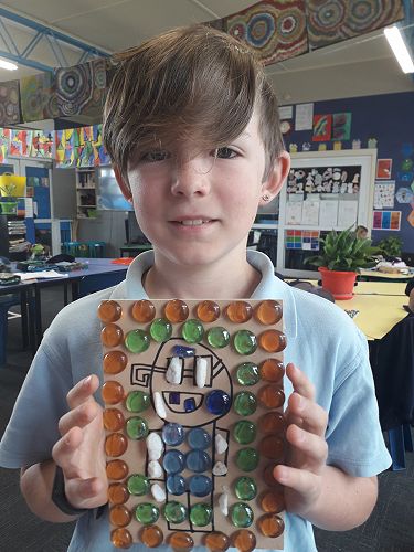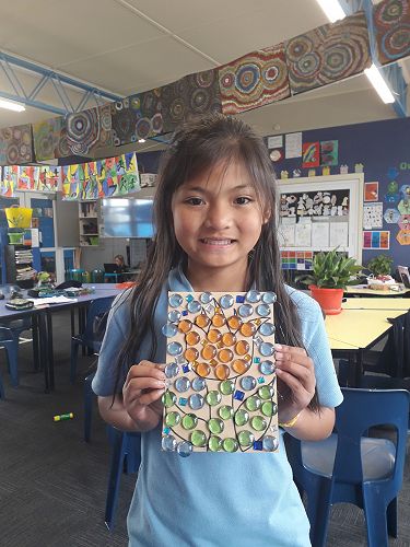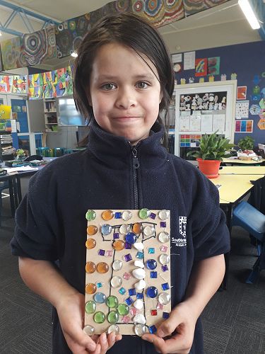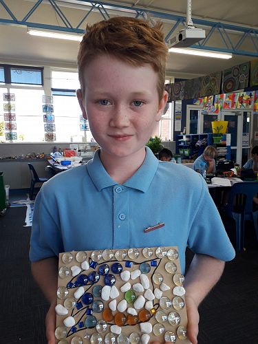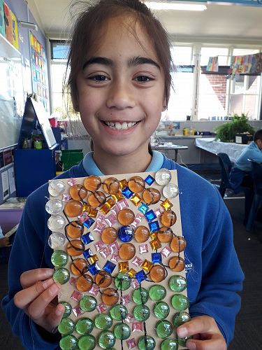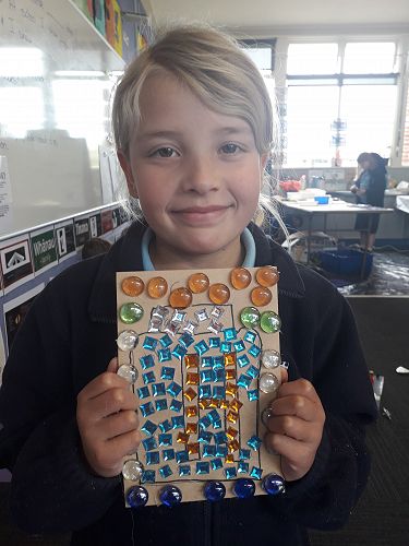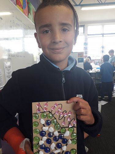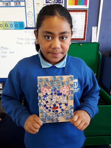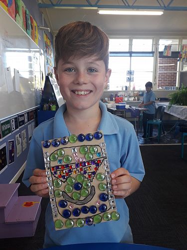 Art - We are an arty bunch in Com 2. We have made mosaics, painted with water colours, dye, and paint. We've worked with pastels and recyclable goods. We have made collaborative art pieces and learnt all about origami.