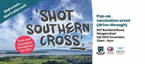 The event is being held over 1 day Saturday 20th November. On this day, make sure you and your whaanau have face coverings and if possible, bring your NHI number.