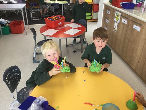 Talking about our birthdays and making birthday cakes with playdough.