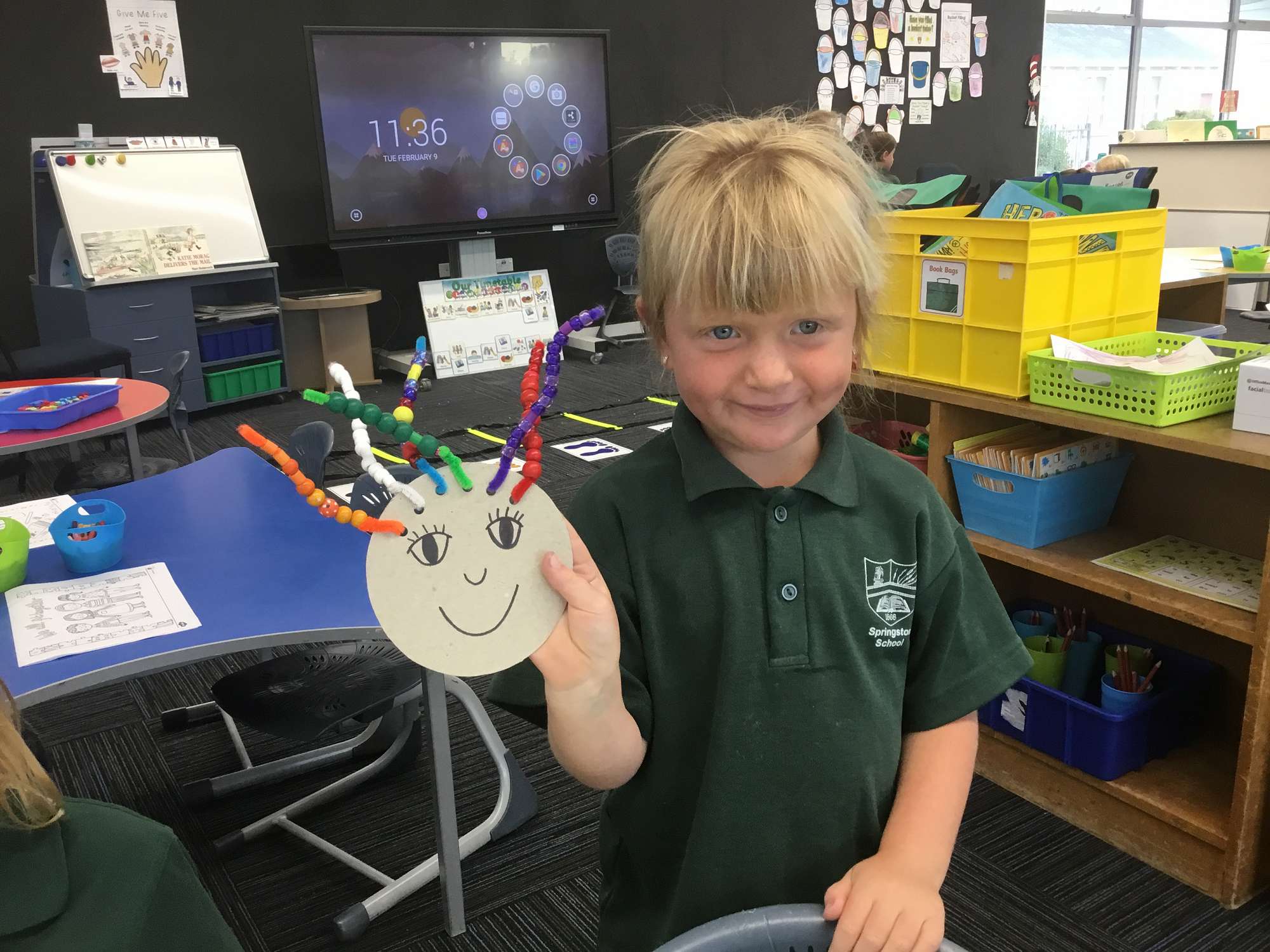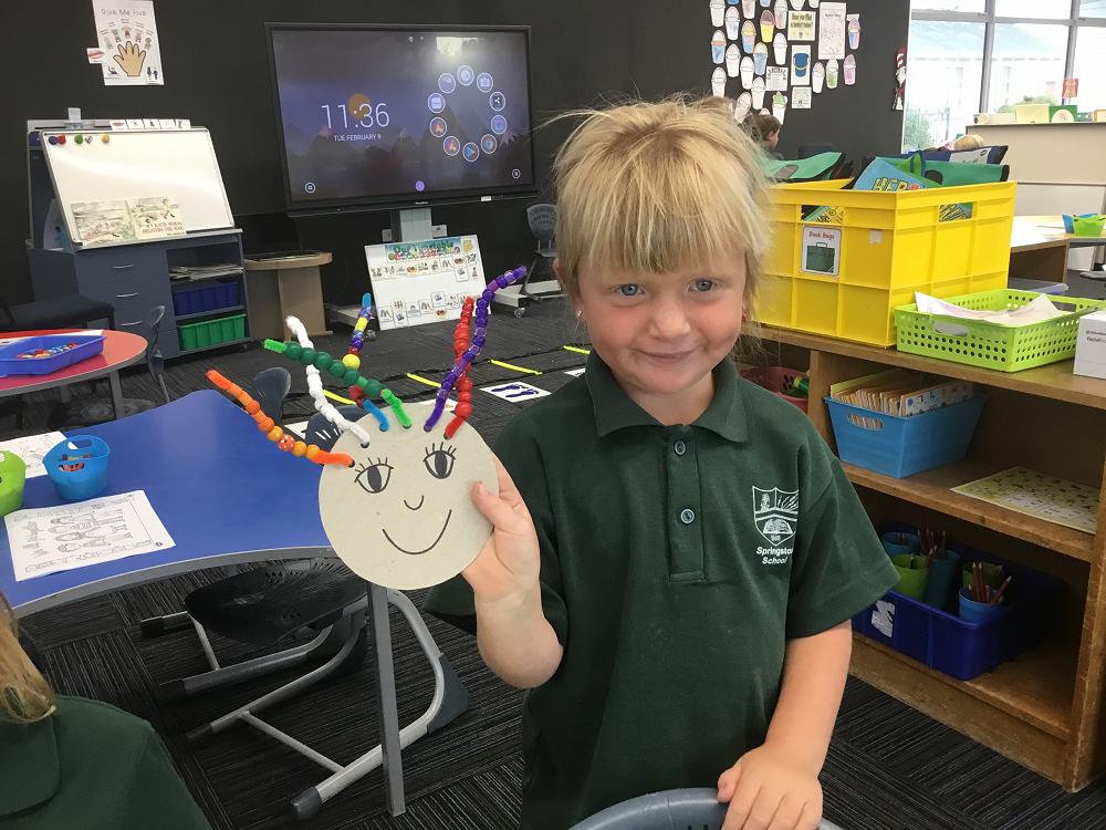 Using our fine motor skills to make crazy rainbow hair!