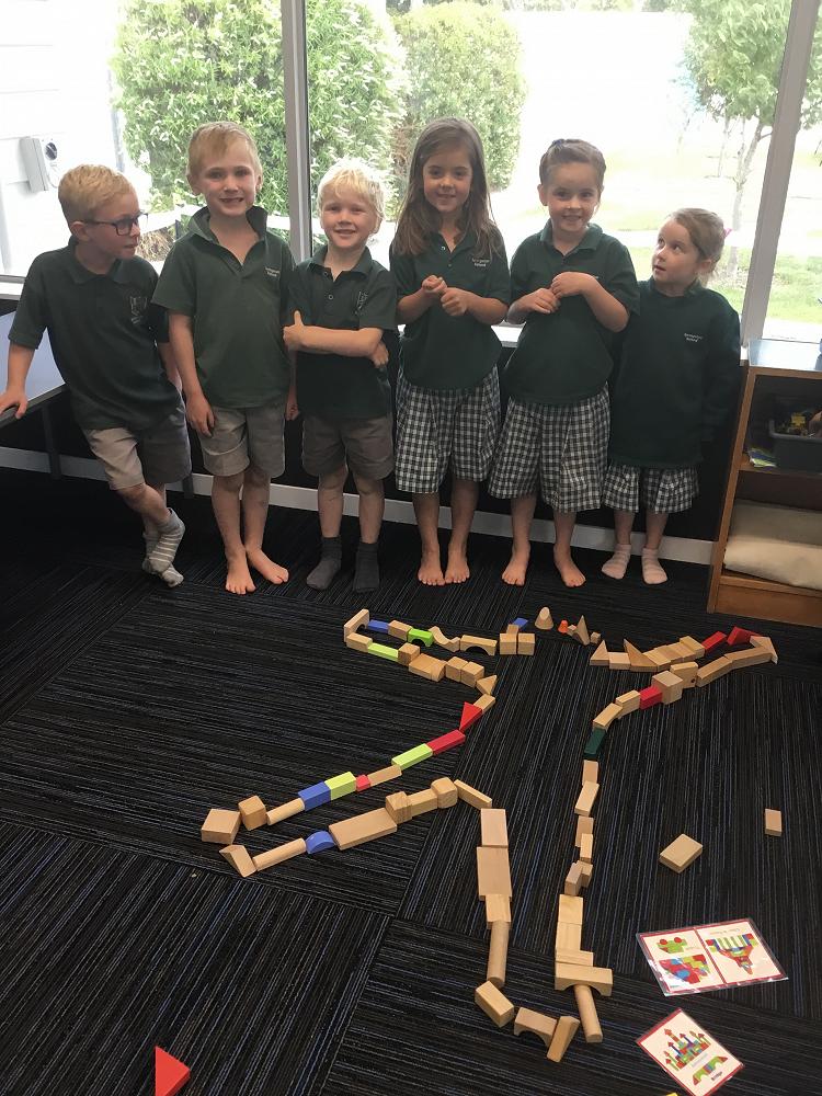 Working together to make shapes with our bodies and blocks.