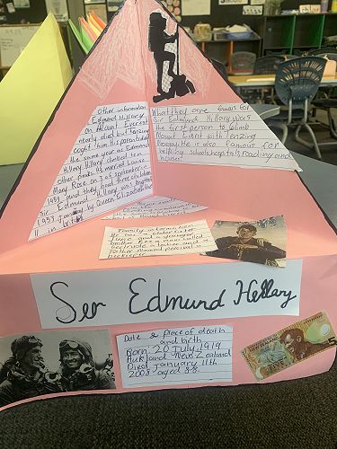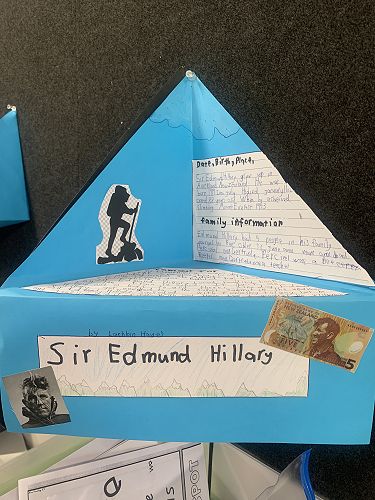 The Kakariki tamariki have been learning all about Sir Edmund Hillary. In writing this term, we used our research skills to gather information and then we presented our findings in 3D ‘mountains’. We learnt all about his family history and background, his great achievement of being the first person to conquer Mount Everest along with Tenzing Norgay, and that he was a short and shy boy who grew up to be strong and adventurous!