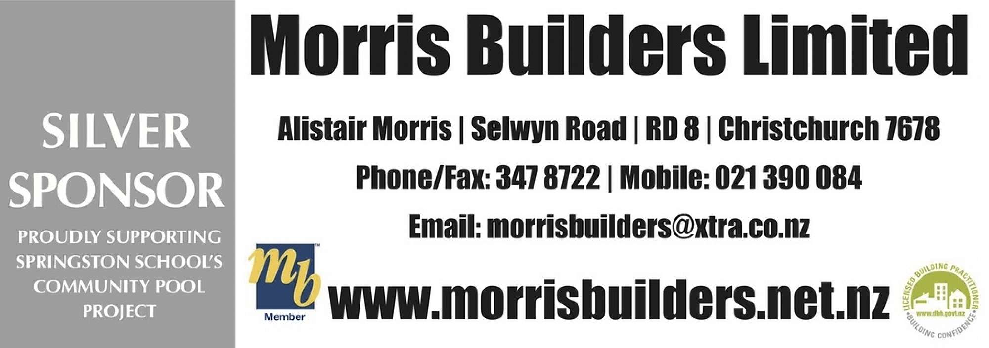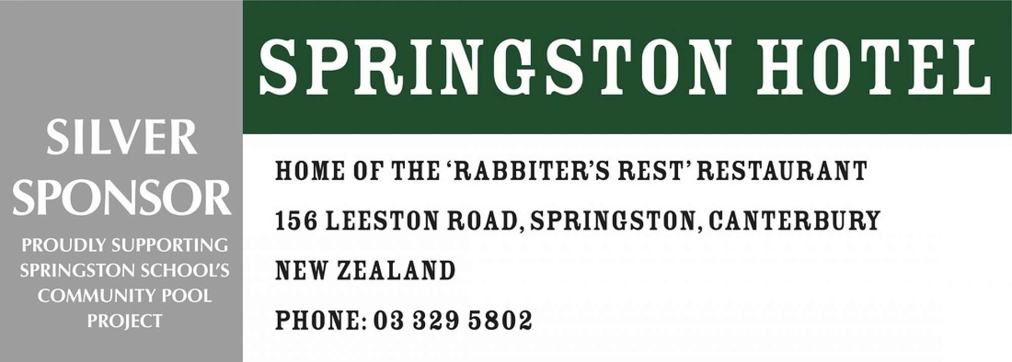 Sponsors Springston School — March 17th, 2020 Please support our sponsorship partners as their assistance is very important to the Springston School Community. Springston School Major Swimming Pool Sponsors The Canterbury Communty Trust Mainland Foundation NZ Community Trust Gold Sponsors Selwyn Toddlers Truck Plus Silver Sponsors Challenge Lincoln Morris Builders Ltd Mark's Automotive Ltd Springston Hotel General Sponsors Red Chilli Real Estate Lincoln Digital Print Meadows Mushrooms