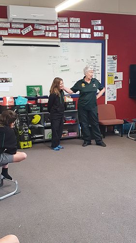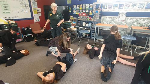 This week the senior students had the opportunity to spend some time with Shayne from St John. She went over what to do when you find a person unresponsive and how to correctly use the D.R.S.A.B. D is for danger, R is for responsive, S is send for help, A is airway and B is breathing. We learned how to put the person in the stable side position (recovery position) so that they do not choke on their own vomit or saliva while waiting for emergency services to arrive.