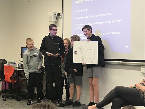 The day started with a greeting from Jack (Children’s University organiser) in the auditorium. Here we were advised that we would have four classes to take part in. After the briefing we made our way across the campus to our first activity named Sheep 101. Our focus was understanding about farming animals but particularly we focused on cows and sheep.