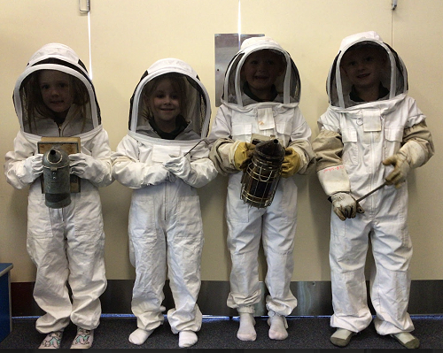 We loved looking at the bees in their hive, trying on the beekeeper suits and looking at the equipment beekeepers use. We also looked closely at the honeycombs and had a taste of some honey.