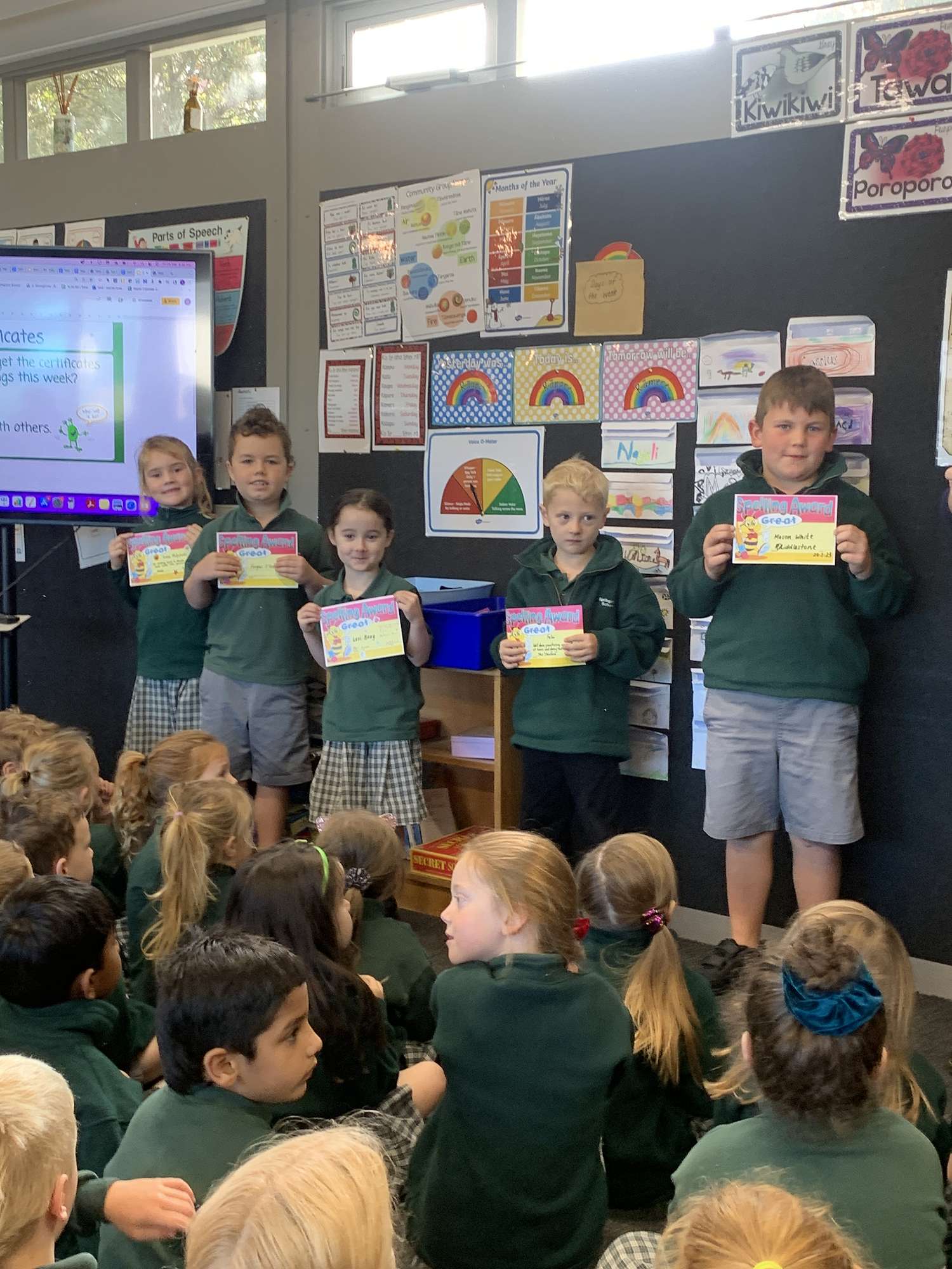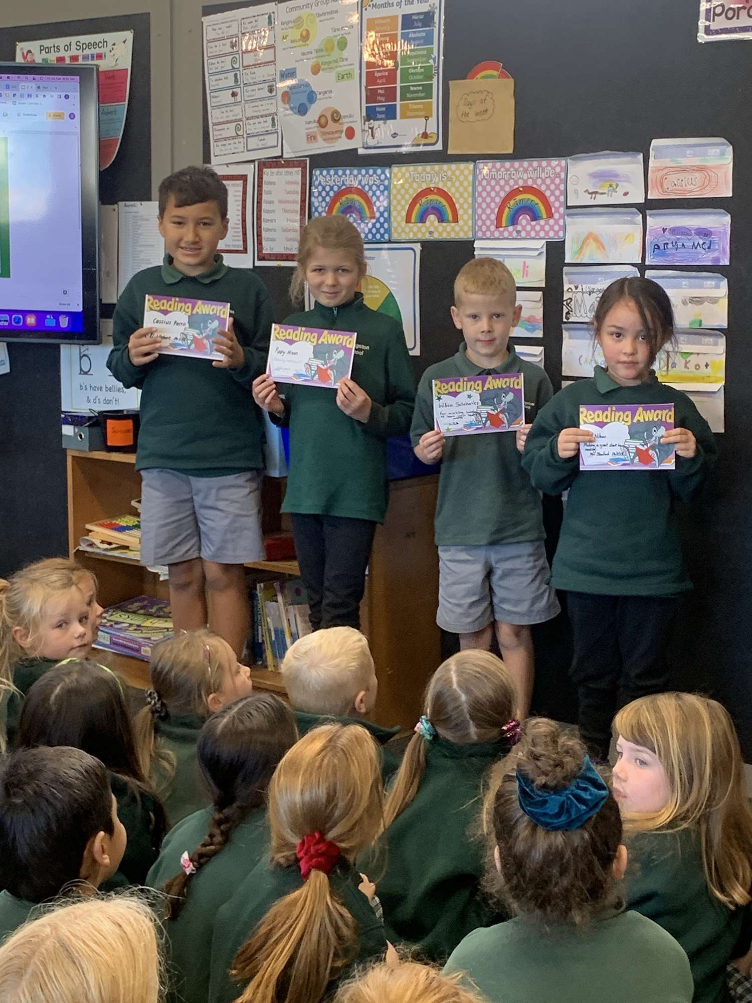 We gave out certificates for reading achievement to Cassius, Pippy, William S, Nikau and James.
