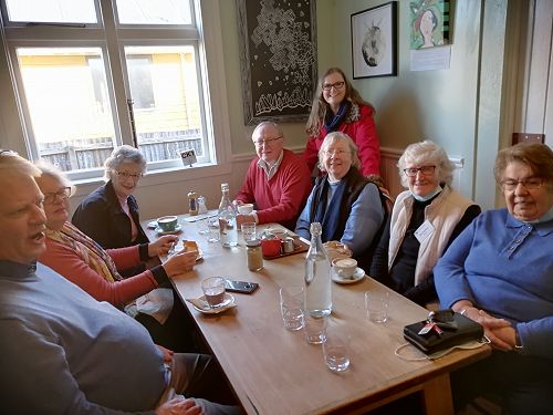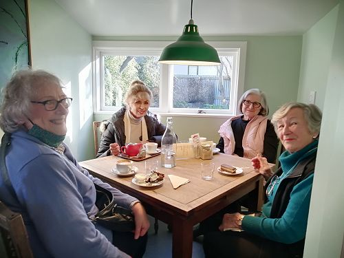 Vicar Jill Keir took people around the new building, with stories of the rebuild and how beautiful elements of the old building destroyed in the quakes were able to be salvaged and reused in the new building. There were a number of St Barnabas parishioners who had connections to Holy Trinity. Judy Dodwell found her grandparents' grave and her parents were married there. Cam Moore remembers sitting on the bar of his father’s bicycle on his way to Sunday school at Holy Trinity. Waveney told us an amusing story of a Curate mistakenly taking away the Bishop’s chair, and the Bishop ending up on the floor - the poor curate ended up being sent to the Chatham Islands! And of course a van outing wouldn't be complete without a visit to a café - Under the Red Verandah fitted the bill admirably!