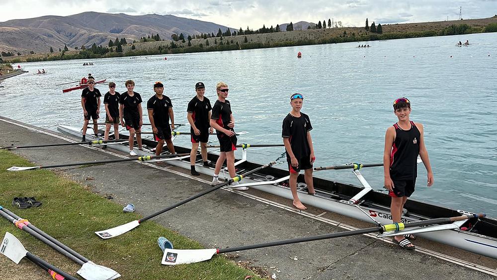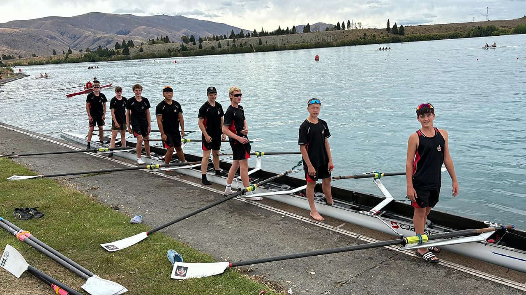 Prior to the start of the school year, the St Bede’s Rowing Squad competed at the South Island Rowing Championships in Twizel over the weekend of 27-28 January. Unfortunately for us and the rest of the South Island rowing fraternity, the summer of Nor’westers continued and not a single race could be completed on the Saturday. Fortunately, the weather on Sunday was a completely different story and we saw some of the best conditions we had all season.