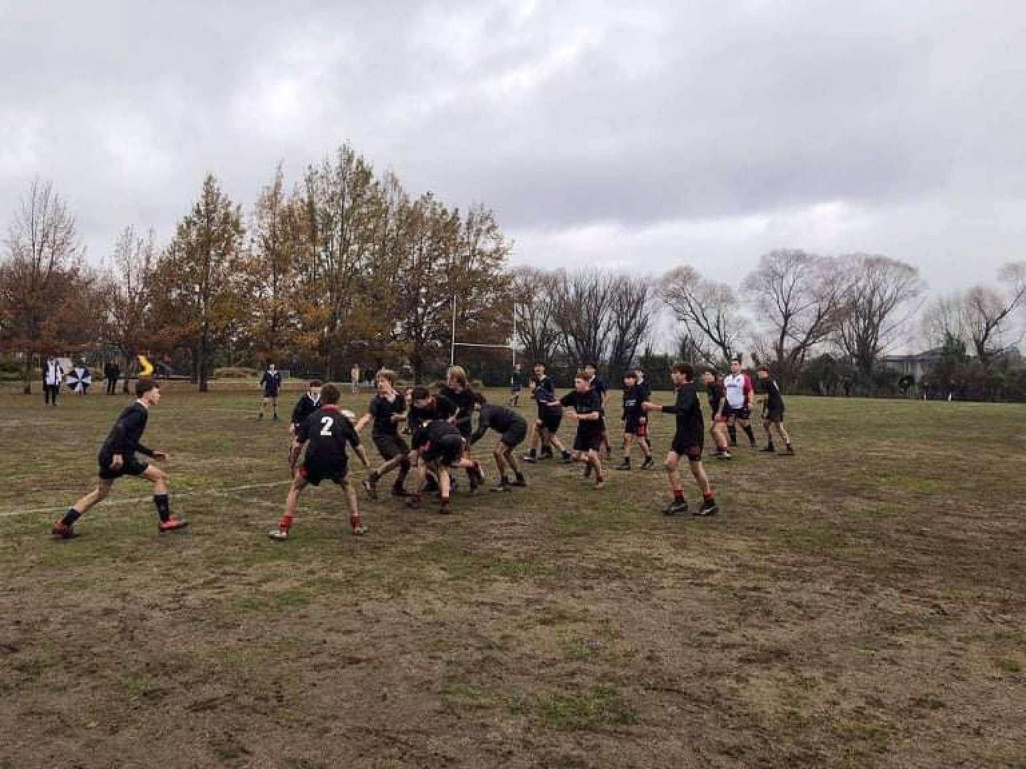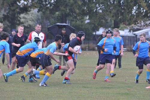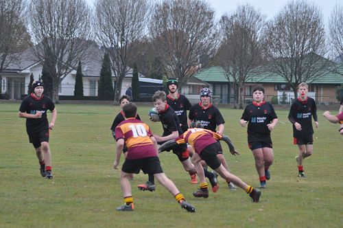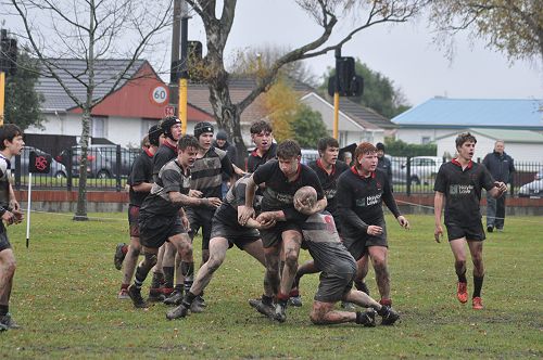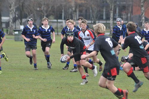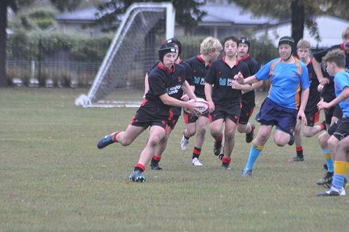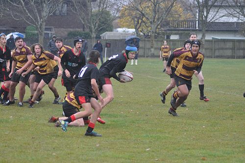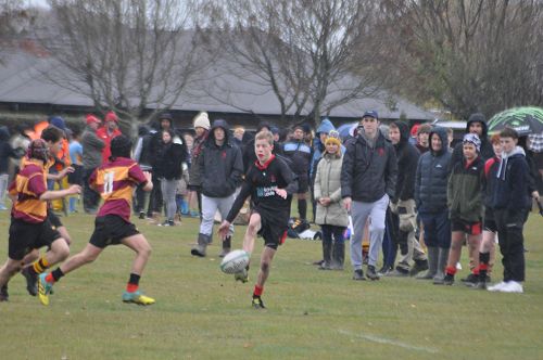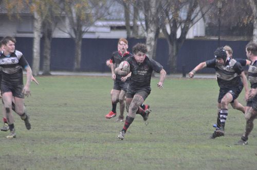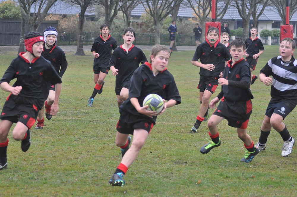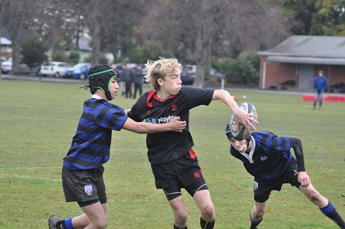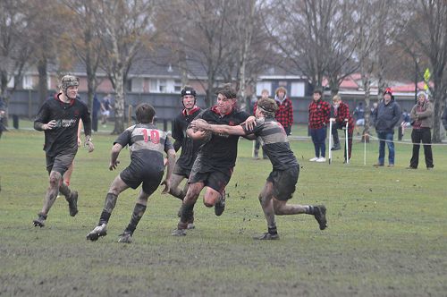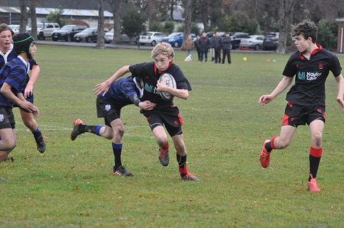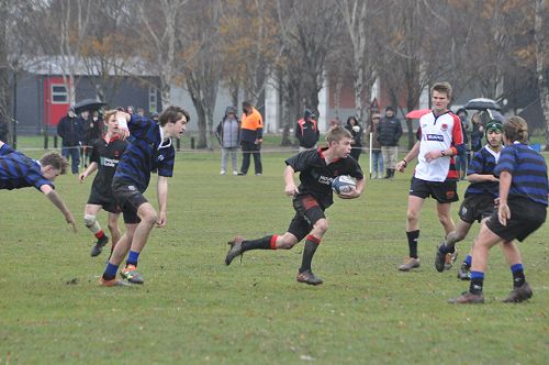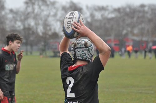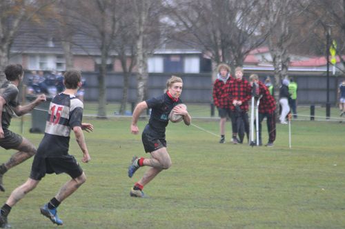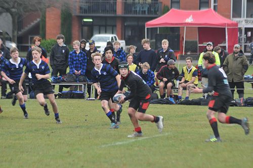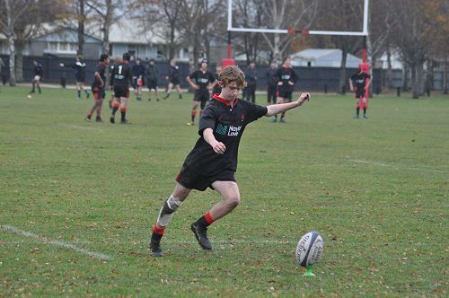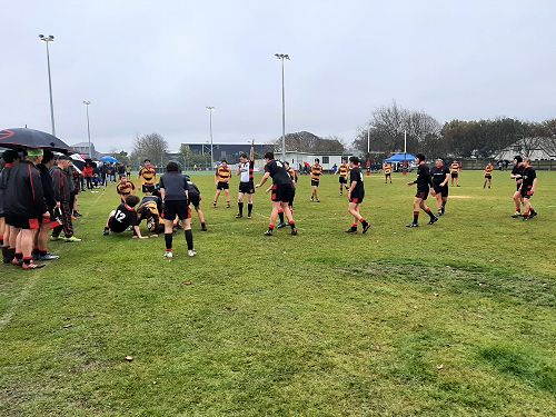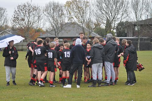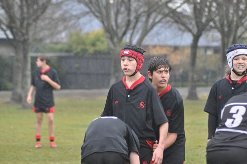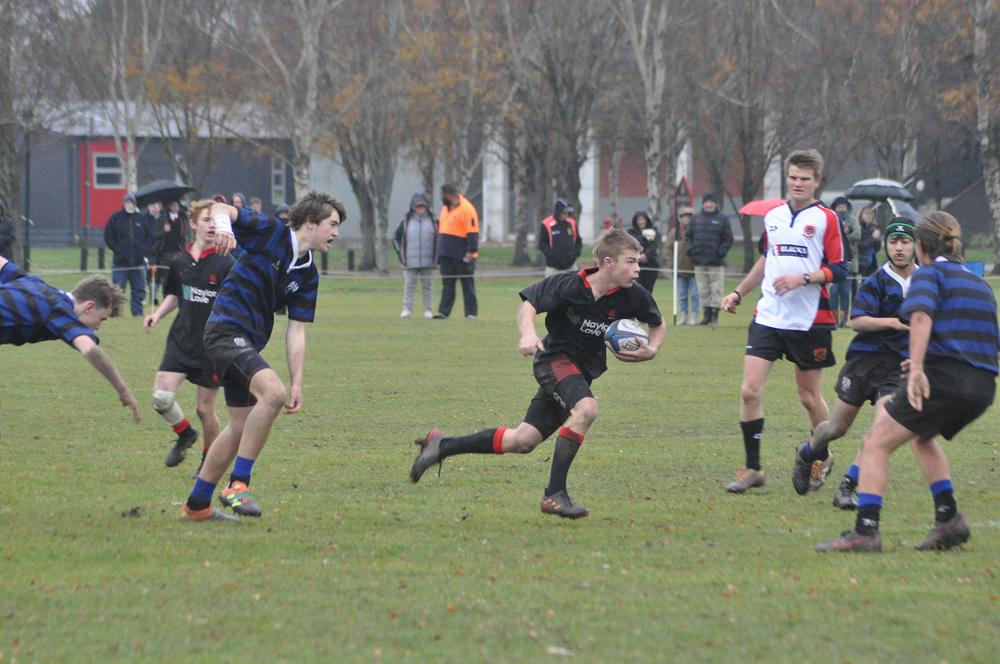 U14 Black started well against Cashmere. The first 10 minutes had good structure with the forwards creating go forward with some strong carries before going wide to the backs. This led to an early try with Josh Bain crashing over. Another set of good phase play led to an overlap out wide and some crisp passing saw Danny Boyce scoring out wide. After that both teams struggled to maintain momentum as the rain started with the odd spilled pass or turnover in contact. Some good breaks by our forwards looked promising but our support was often late arriving leading to too many turnovers. Cashmere bounced back with two late tries in the half despite us putting some good pressure on them when they had the ball in hand.