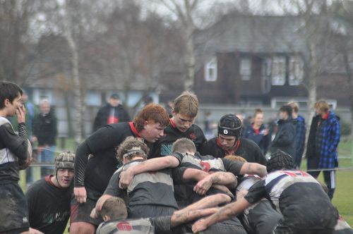 In the second half CHS came into the game more with increased possession. They scored 3 unconverted tries, including one to take the lead with 5 minutes to go. However SBC showed great self belief and composure - down to 13 men - to camp on the CHS line and score the winning try in the last play of the game. During the game SBC were excellent in their goal-line defence, and their scrums and lineouts. They were also on the wrong end of the penalty count.