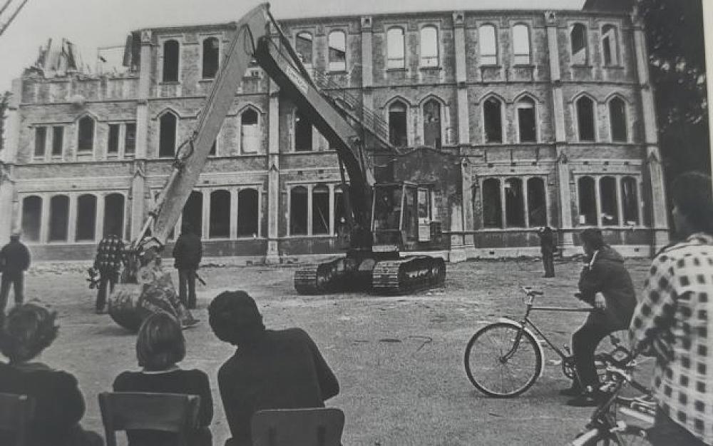 The sports fields formed and the trees in the driveway grew. In the late 1970s, the cost of earthquake strengthening and a change in modern schooling meant that an extremely difficult decision had to be made. Would the building remain practical as it was for the cost that the strengthening would take? An agonizing decision was made that in reality, new more modern facilities were required. On March 29 1980, in what has been described as a “sad, sad day for St Bede’s “. The demolition crew came in and the work began.