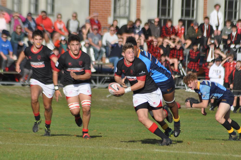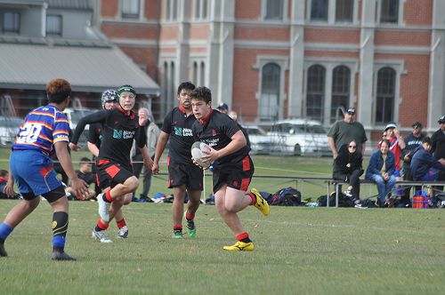 Christchurch Boys' High won the toss and elected to kick off to us, which got our boys immediately into the swing of things. There was some outstanding breakdown play displayed by St Bede's and the continuity of play displayed by the team was really beyond their years. Unfortunately after spending long periods on attack with the ball in hand we found ourselves under our own posts a couple of times due to a minor mistake or rough bounce of the ball. The whole team kept their chins held high and being behind by 14 points only seemed to make the team more determined.