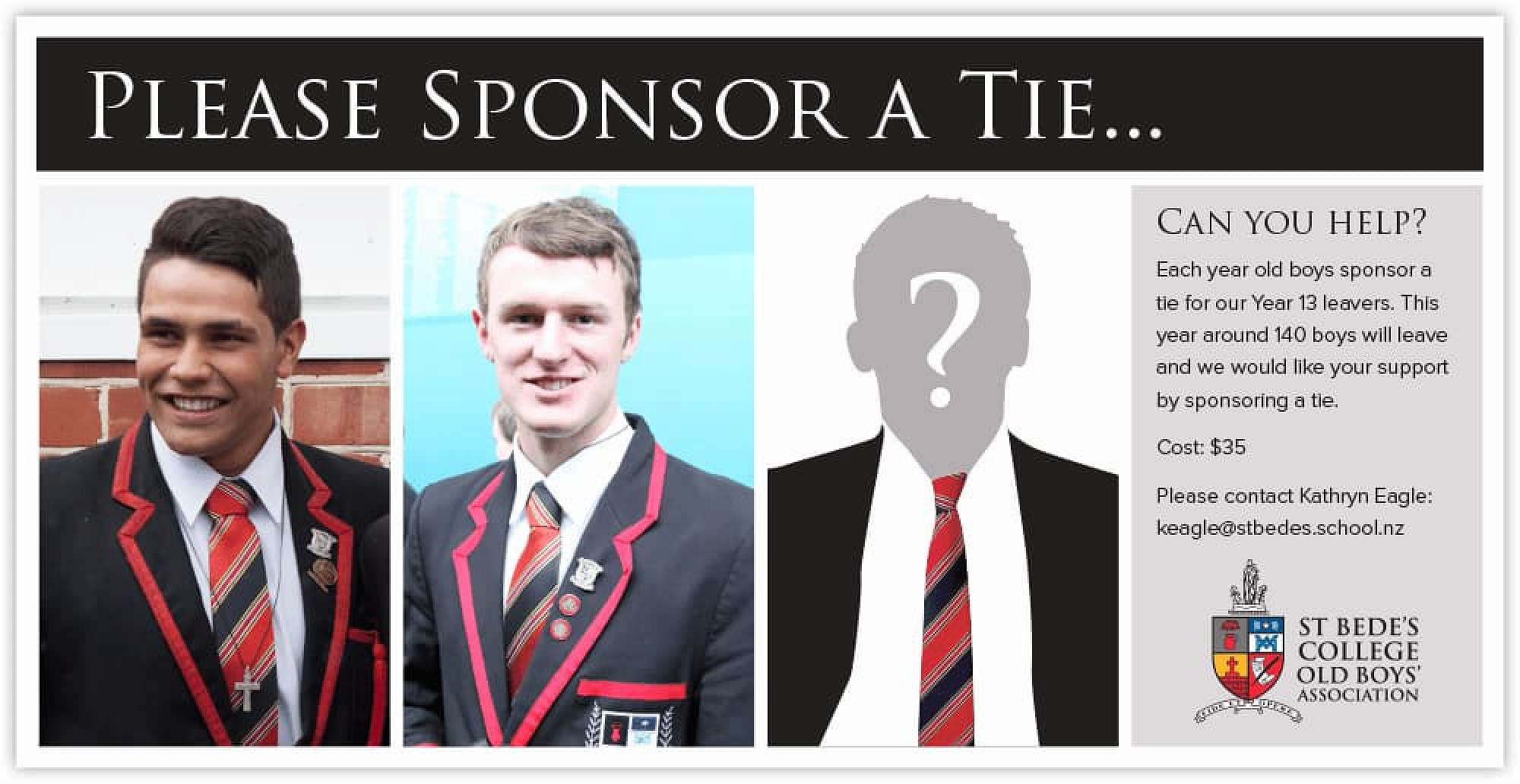 More Tie Sponsors Needed! Kathryn Eagle — August 15th, 2022 Be part of this wonderful school tradition that signifies each boy's transition from student to old boy. Click to enlarge