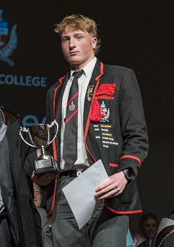 This year's Dux, Connor Johnston, received Excellence awards in Economics, Religious Education and Physics. He was first in subject for Economics, Physics and Statistics and, at time of writing, has achieved 72 Level 3 Excellence credits. He has gained a Leaders of Tomorrow Entrance Scholarship to the University of Otago and was the 2024 Pathways Prefect.