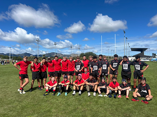 The Junior Black team, coached by Sam Tatupu, lost to St Thomas's, Haeata, and Marlborough Boys' College in pool play. The Junior Red team, coached by Mac Gibson, was defeated by St Thomas's and SBHS in pool play but managed to secure a win against Greymouth Combined, 20-10. These results led to the two SBC teams meeting in the Bowl semi-final. The Black team led the match for most of the first half through outstanding performances by Xander Milne, Taani Nuku, and Mako Downs, and they looked fairly comfortable heading into the second half. However, powerful ball running by Harley Watts and Troy Applegarth, dynamic moves from Jacob Ioane, and strong tackles from Samuel England, fuelled the Red team’s comeback, resulting in a 26-16 victory. The Red team then went on to win the Bowl final 24-16 against Greymouth Combined.