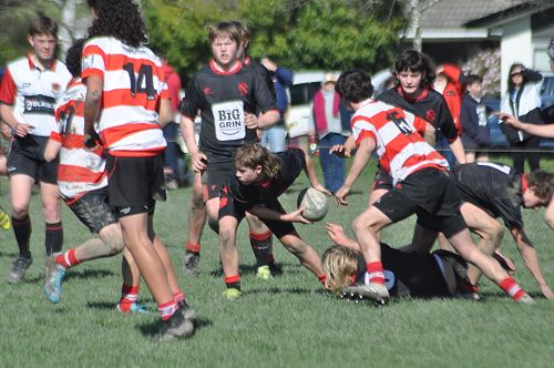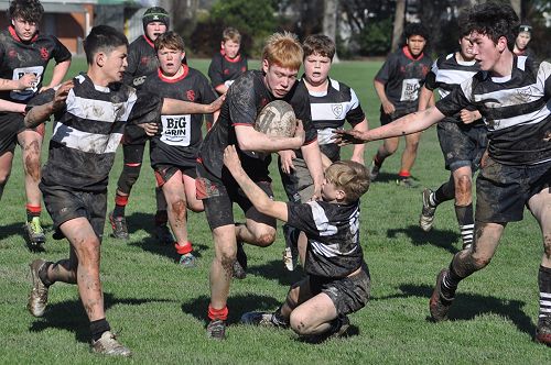 The first half was a fairly even affair with our team bouncing back from an early Nelson try to score two of our own. The game was in the balance at half time. The team felt that if they could sustain this effort they would be in the game at the end. Half time: 19-14 to Nelson Boys’