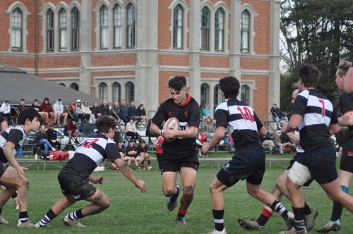 The team played its semifinal at home to a resurgent Christ's College. This College team has improved dramatically throughout the season, and we knew they would be up for this contest. A complexity even before kick-off was the matter of the 1st XV Final up north. Obviously there was plenty of interest from our players in this game and, without careful self management, there was a chance for them to lose focus on our game at 2.45. A good call was made for players to watch the game together at Max Coltman's residence, which allowed the players to be together, and debrief on that game, before arriving for their own. The team started the game excellently. Just five minutes in fullback and captain Harry Friend dotted down for a try on the back of a few phases strung together. Christ's were next to score with a penalty to make it 5-3 after 10mins. Stand-out centre Noah Barrett then slotted a 40m penalty to push the score to 8-3. The team held this lead through stalwart defence, Heinrich Muller and Vili Fifita leading the way. The defence even held with Christ's hammering away on the 5m for an uncomfortable amount of time. However, after a mountain of effort on defence the line finally broke right on halftime as Christ's scored. 8-10 at the break and everything to play for.The second half started well but the game was very evenly poised. It was us that blinked first, and Christ's snuck in their second try of the match to make it 8-15 with about 20 minutes remaining. When Christ's slotted another penalty, as a result of more solid defence protecting the line, the scoreline pushed to 8-10, and the team needed to respond. Down by 10 points scoring next was absolutely essential. What followed was a fine example of a team not panicking and a group of young men showing true grit. Christ's had a player binned for illegal clean-out and the Bedeans went to work. 10 points were scored in the next ten minutes. A penalty and conversion to Noah Barrett alongside a industrious try to forward Makahni Kerr bulldozing over from close to the ruck. Scores were tied with over 10mins remaining. No 8 Vili Fifita was then binned, in a harsh call, for raising the legs in a tackle...the team now needed to finish this semifinal a key man down. Though there were some hairy moments, most of the final 10 minutes were played in Christ's Colleges half with us in control. There was the feel that, had thr game gone a little longer, we would have forced a penalty goal or scored a try. In a bizarre and dramatic affair the score at full time was 18-18. Being a semifinal there was some uncertainty about what came next. There was to be no extra time. Since both teams had scored two tries the result was decided by standings, where our effort to be top qualifier paid huge dividends. A big congratulations to the team on a noteworthy come back to save the game and push the season one more week.