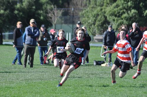 A good break from Mitchell Murtha gave an opportunity for Dominic Knill to score in the 3rd minute and the conversion was good. 14 - 7 to Boys' High.