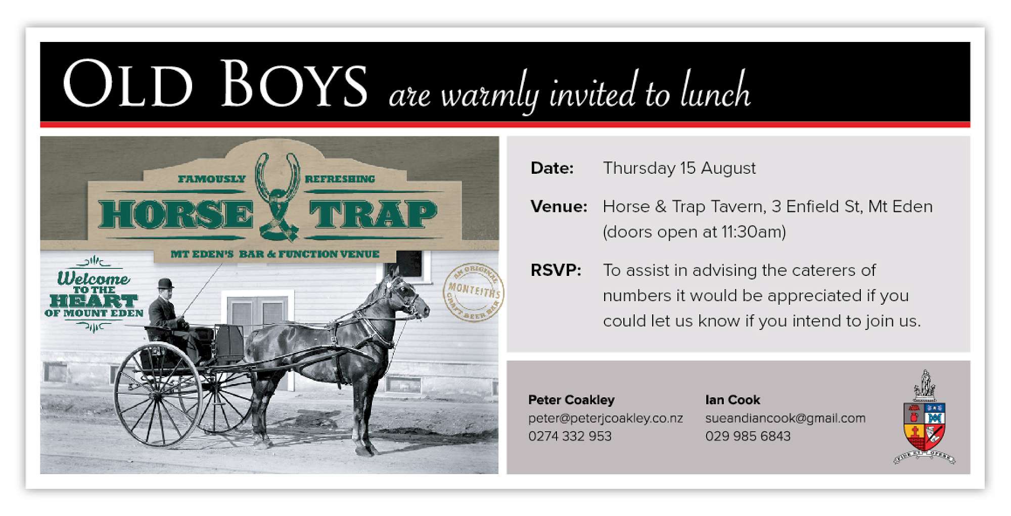 Invitation: Horse and Trap Kathryn Eagle — June 24th, 2024 Details about the next Horse and Trap lunch in Auckland which is happening in August.