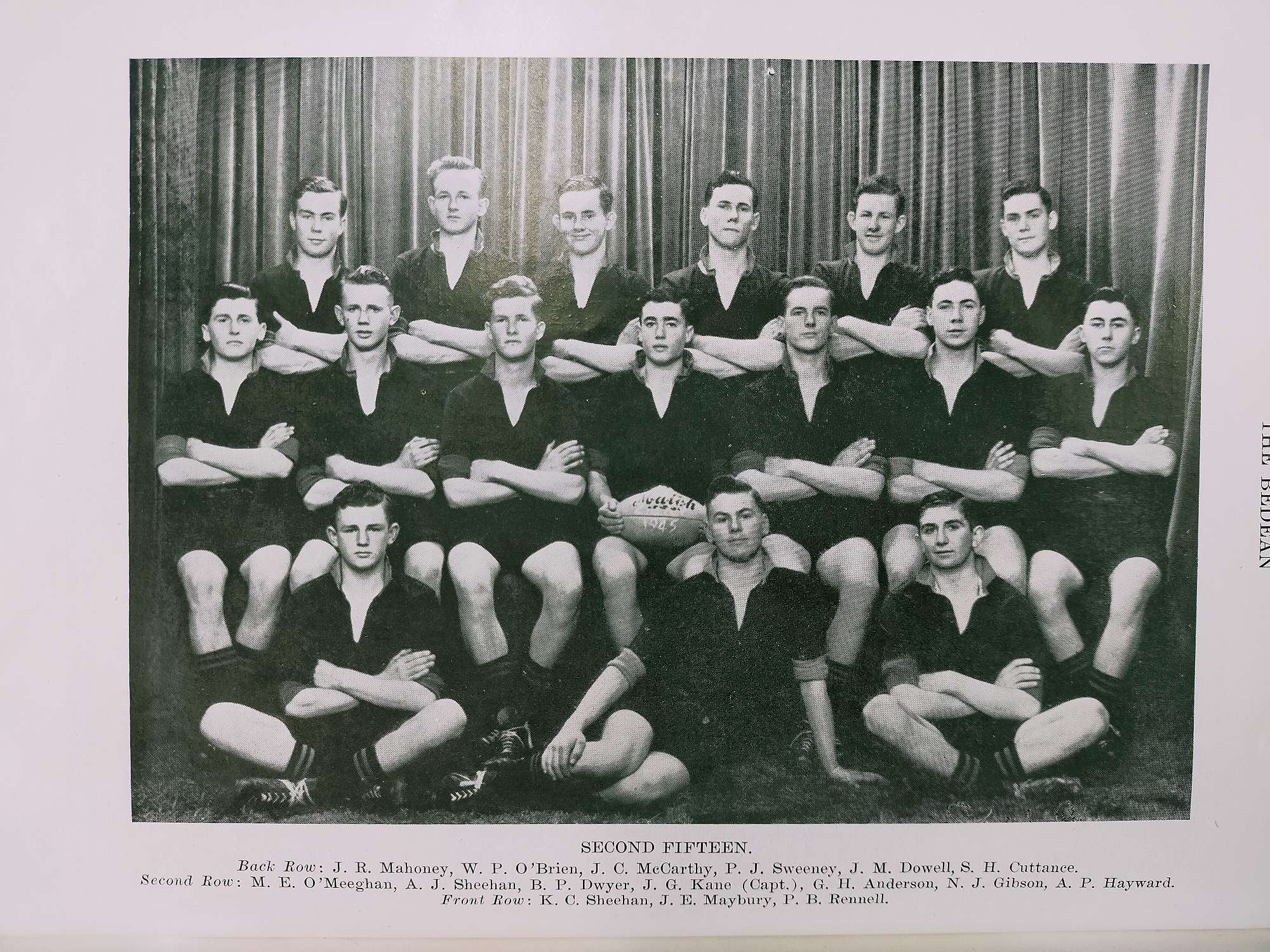 Brother John, or Stuart Cuttance as he was known while a student at St Bede's, was here from 1941 - 1945, gaining a place in the Second XV(back row, last on the right) and his Higher School Certificate. He was a Day Boy, who biked from Spreydon to school every day, a round trip of about 18 Kilometres.