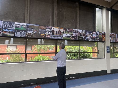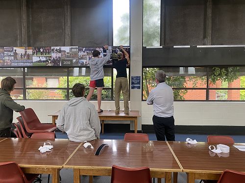 In 2020, we sadly had to remove the photos of our rugby teams that hung around the walls of our dining hall, after sun damage had faded them to a near unrecognisable state. It was always our intention to replace them without subjecting further images to the same fate. We decided on an art installation that could be installed and over time added to, or re-printed and replaced.
