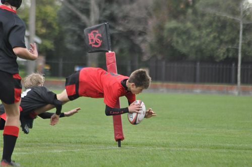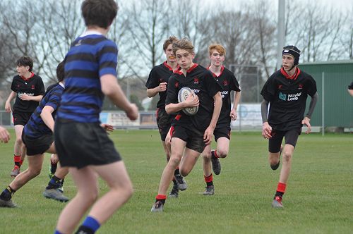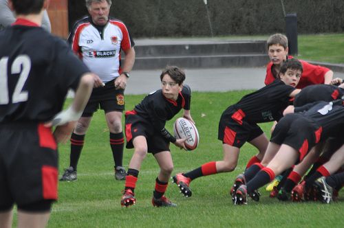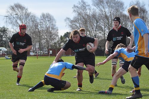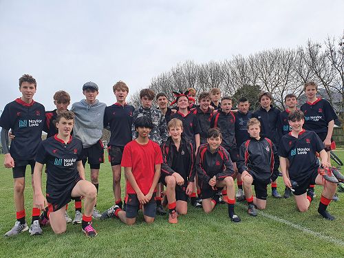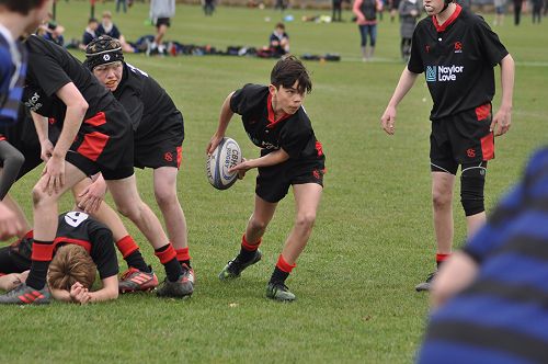 The forwards out-muscled the big Boys' High pack and were strong in the rucks and scrums (getting 2 tightheads). The backs passed well and ran with pace.The game opened up in the second half and the lads scored some excellent tries. Three boys scored their first tries of the season.