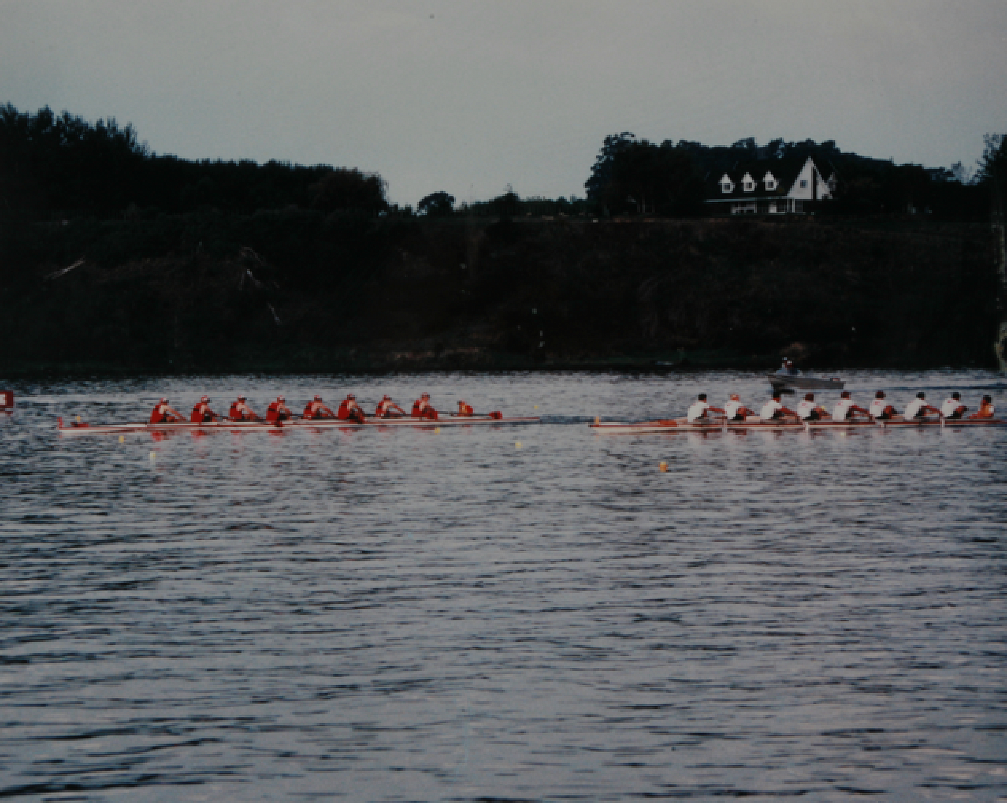 In 1964, hopes that St Bede's might be able to produce a winning Eight were not high at the beginning of the season. However, a well-coordinated training schedule saw the crew row 170 miles and carry out a number of strenuous ergometer tests in the lead-up to the Christchurch Inter-Secondary Schools' Regatta at Kerr's Reach. The Head-of-the-River title was to be decided before a large crowd containing its share of St Bede's supporters who no doubt helped propel the crew to a famous victory. The Christchurch Press reported at the time that "good, sustained and tenacious rowing gave St Bede's College a well-deserved win" over rivals Christchurch Boys' High School and Christ's College. David Lindstrom (1962-1966) stroked the crew and Michael McNab (1963-1966) the coxswain helped lead the Eights to a winning time of 5mins 9.8 seconds, one of the fastest times for the mile race recorded on Kerr's Reach.
