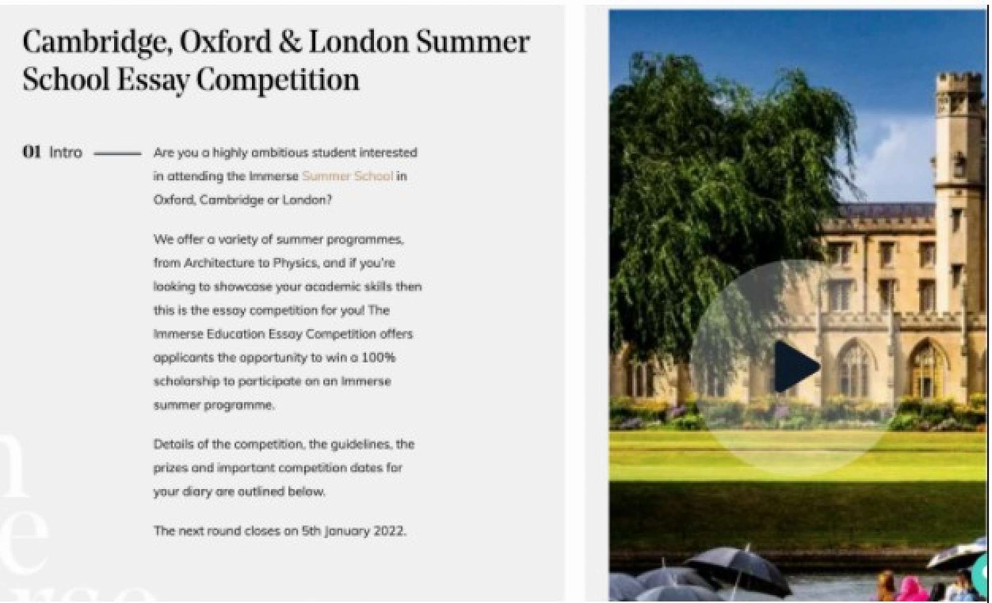 Immerse Education Essay Competition: Win a full scholarship to the Immerse Summer School in Oxford, Cambridge, London or online!