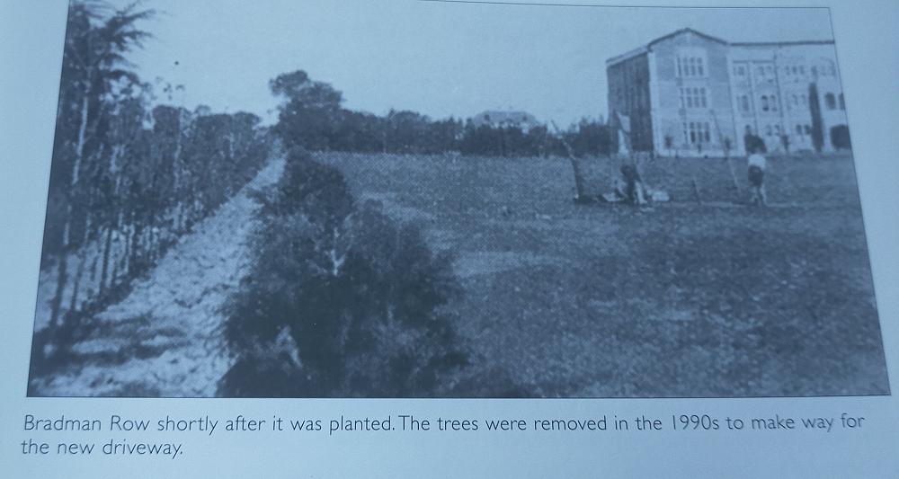 1930, under the direction of Fr J Cullen SM, saw the planting of Bradman row, this consisted moving the Lawsonia and adding to the Lombardy poplars already there. The reasoning and naming behind Bradman row was that the 334 Lombardy Poplars, which were now planted and reached to the front fence represented the record 334 runs scored in a test match that year by Don Bradman. In this same year, Silver Birch were planted along the drive and front fence and the elm was planted in the quadrangle.