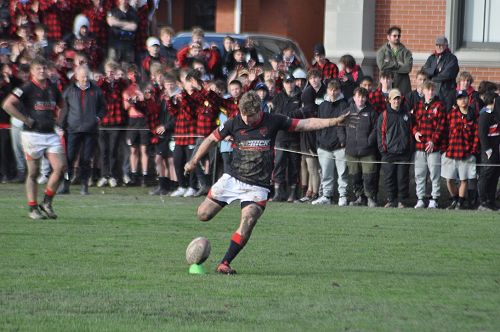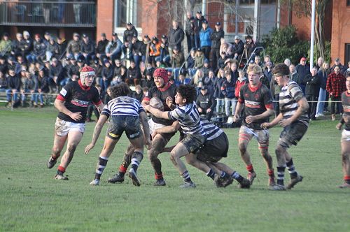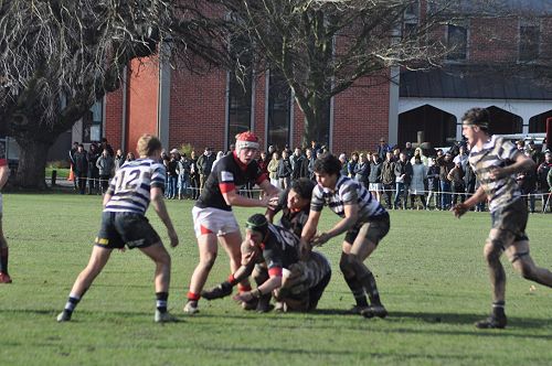 A major feature of the game were the conditions. 45 minutes before kick-off a gale force wind blew in bringing driving rain that unfortunately turned the field in to a quagmire. It was never going to be free flowing rugby and territory would be king. CBHS had the majority of territory in the first half with very little play occurring deep in their zone. However, gutsy defense held them out and kept the scoresheet clean 0-0 at the half. CBHS started the second half well, pinning us back down in our zone early. Due to the strong defense this time they opted for the 3 points. The team really lifted after this. Strong carries began to roll CBHS back and led to increased confidence in, very cautiously and skillfully, using a little space. Three or four times we got deep into the CBHS zone, seeming like a try was inevitable. But some admirable defense alongside some bad luck and errors keep us out. The final 15 minutes showed quite clearly that, in very difficult conditions, we were the more potent attacking team. Had the game gone for another 5 minutes it likely would have been a victory rather than a ludicrously close loss. The team now looks forward to a home semi final next week. It would be great to get some support down there for it.