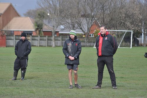 This was the final round robin game for our lads, and as they warmed up the conditions were good, but by kick off the southerly had arrived and we were playing into a strong wind and driving rain.