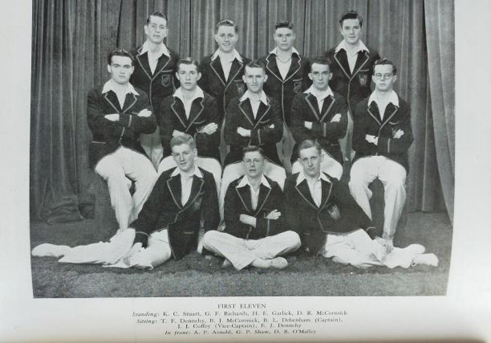 From the time he started at St Bede’s, Peter Arnold was always in a cricket team. In 1940, he started in the Under 14 team and the comments from the 1940 Bedean were “Arnold (251), very consistent” for his batting and in the fielding he “did excellent work”. In 1941, he was in the Under 15 A Team and was “to be congratulated on heading the batting average with 156 runs in 6 innings”.