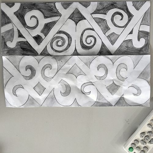 The next step was to design their own pattern using the concepts they had learnt, first using pencil and paper, then stencil cut, and finally carving it into wood. Each individual created their own final product to take home and share with whānau.