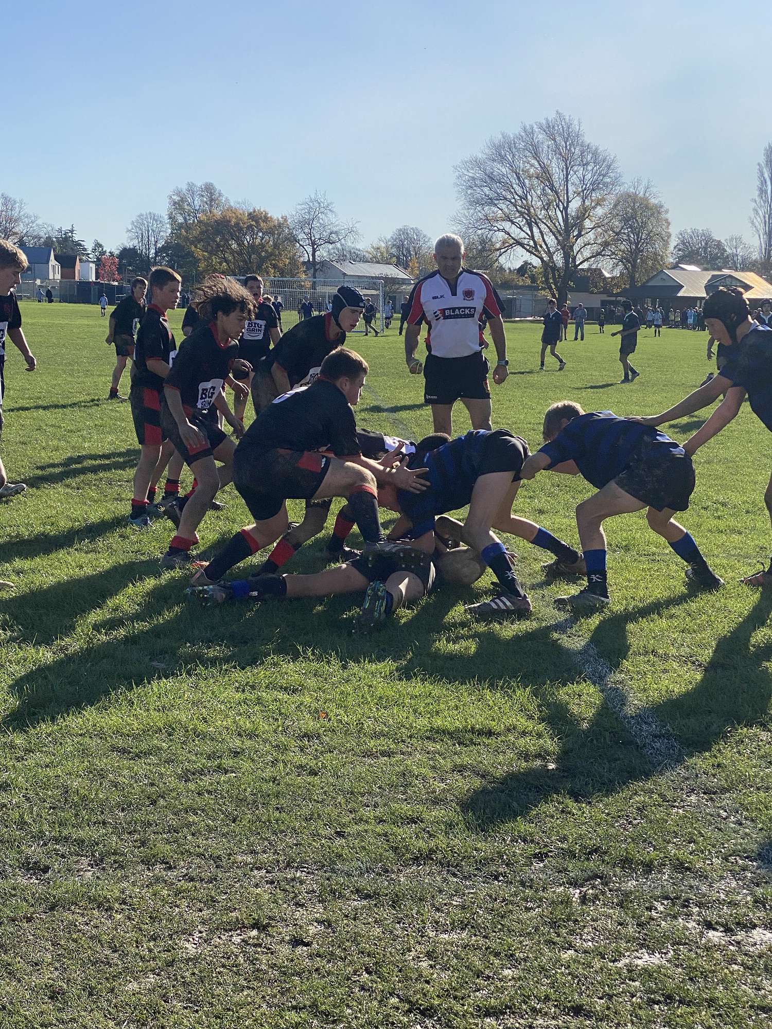This game saw veteran forwards Suliasi Faiva and Andre Sula both being awarded the black tassle for playing 25 games for the 1st XV. There was another element of motivation for our boys in this game in that Christ’s knocked us out in last year’s semi-final match. The game between these two schools is always a structured and passionate affair with both teams being coached by people who know how 1st XV rugby works. There was some concern in our camp as several of our boys were not feeling 100% and others were out with injury. As is usual in this competition, the game was physical and intense. After battering away at each other, the half-time score was 10 all.