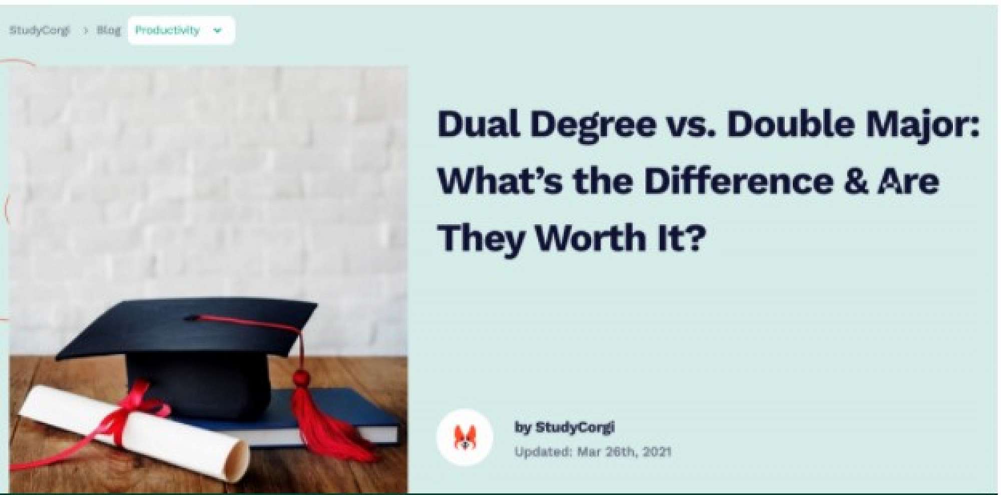 If you are tossing up between subjects to study at uni and considering a double major versus double or conjoint degree, you might like to read this new guide by Study Corgi. It can be helpful for students considering a dual degree or double major or just exploring majors and careers: https://studycorgi.com/blog/dual-degree-vs-double-major-whats-the-difference-are-they-worth-it/