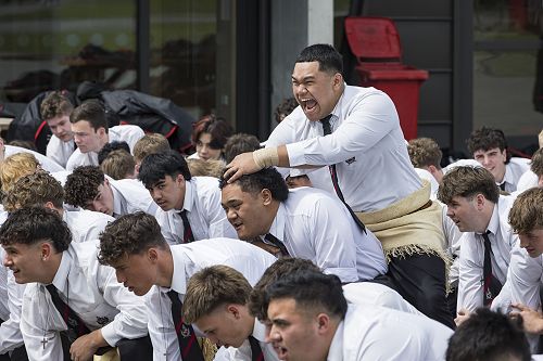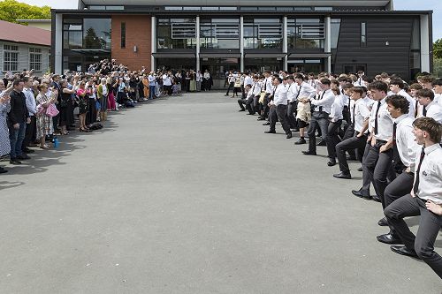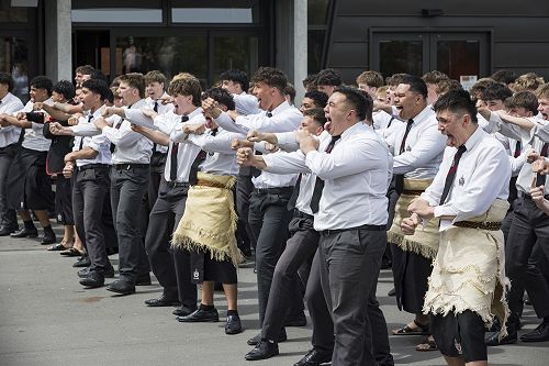 After singing emotional versions of both the College Anthem and Men of Bede, the last time as current students, the 2024 leavers processed out to greet their whānau with the college haka.