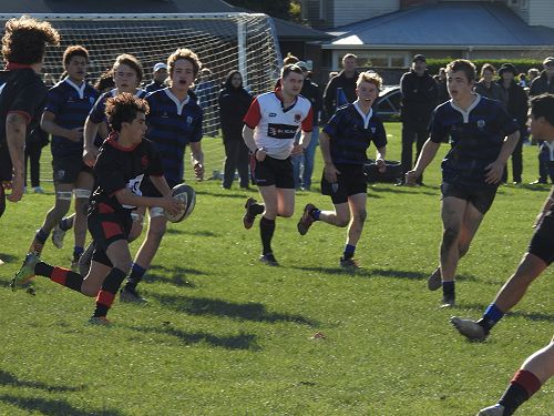 Due to injury and sickness there was only one sub. So it meant a big day at the office for the lads. Continued strong tackling, and the forwards taking the ball up the middle they continually earned valuable metres. However, it was frustrating as the light wind picked up to a gust and Boys' High used this to their advantage as they kicked their way down the field to only metres from the Bede’s try line. Sustained pressure saw Boys' High score tries.