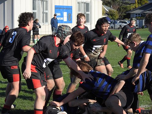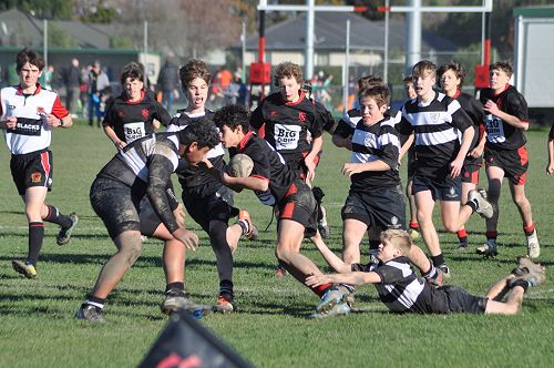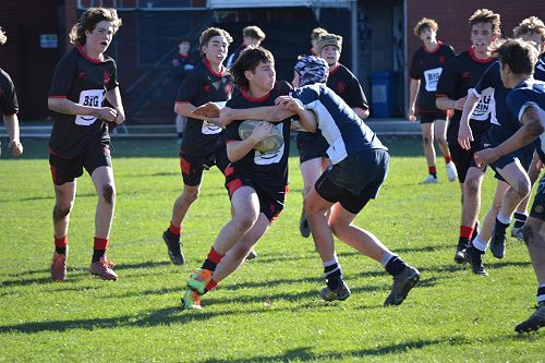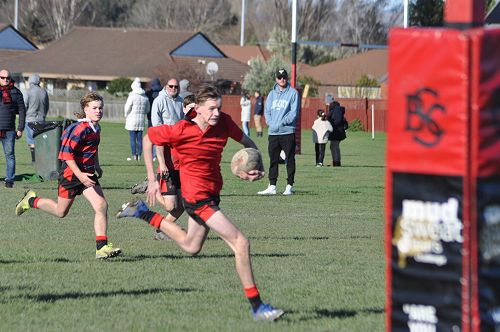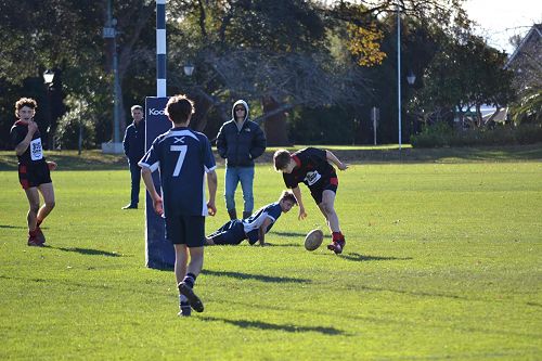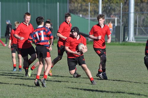 Both teams started strongly and the boys defence was tested early. Some big tackles were made in the mid field and some great turnovers kept the team moving forward. Ed Price and Riley Manson made some storming runs up the middle and Noah Whitfield, Henry Robertson and Nash Moir were strong and effective in the rucks.