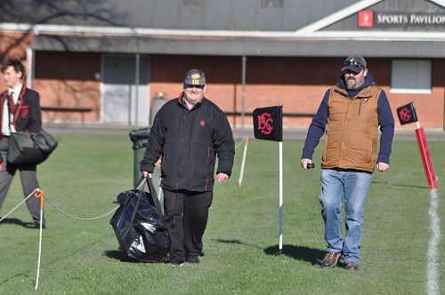 A light wind favoured the St Bede’s Black team (Playing in a white strip) as they played a well-drilled CBHS Black team. Many parents took up the option of sitting in the grandstand of the No. 1 field to watch a very even match.